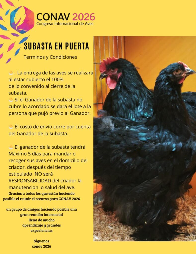 🐥 La entrega de las aves se realizará al estar cubierto el 100% de lo convenido al cierre de la subasta.